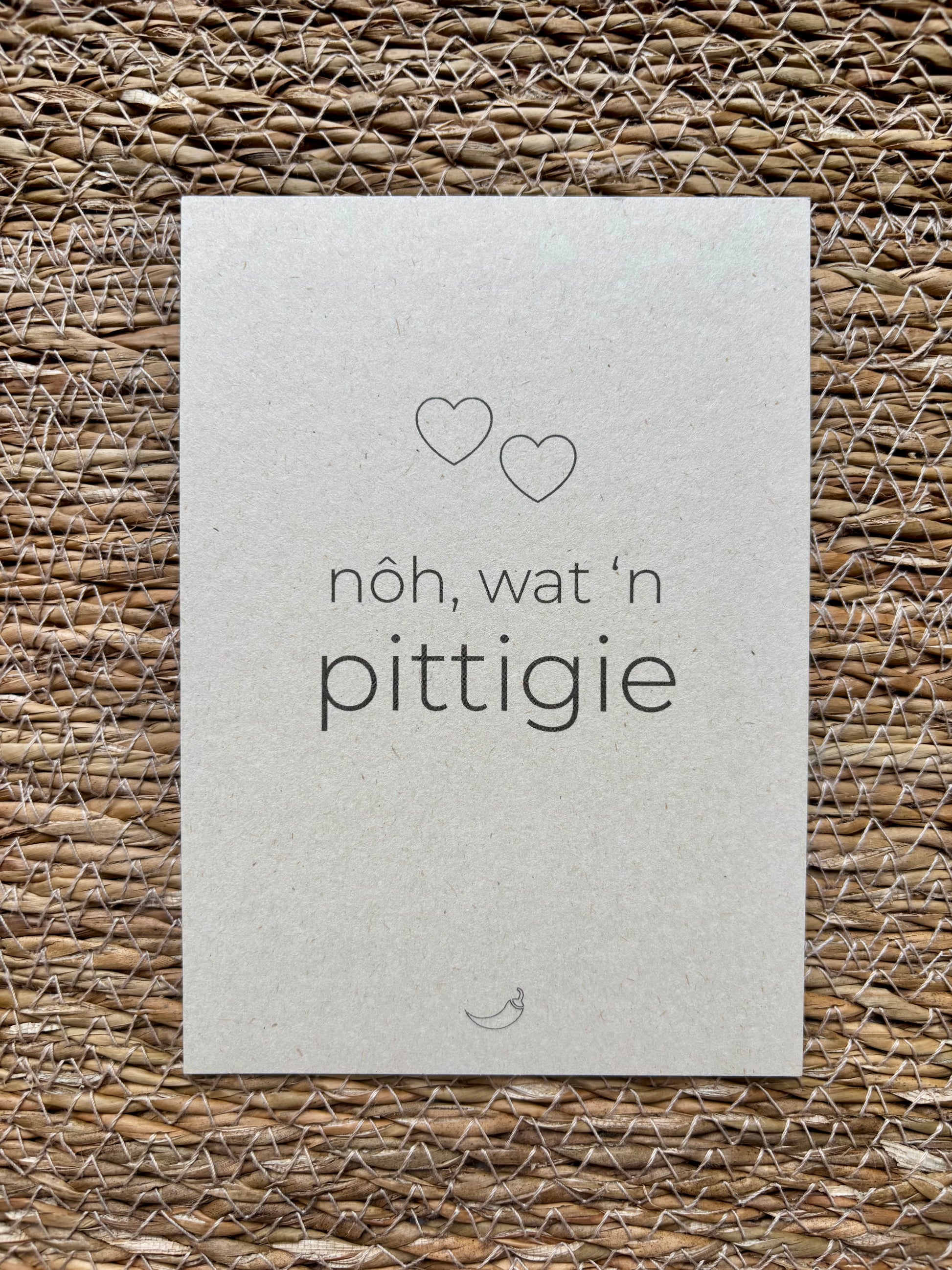 Een echte Westfriese kaart van Pittige Moidjes, leuk om te versturen, zomaar te geven of in een lijstje te doen. Skitterend!