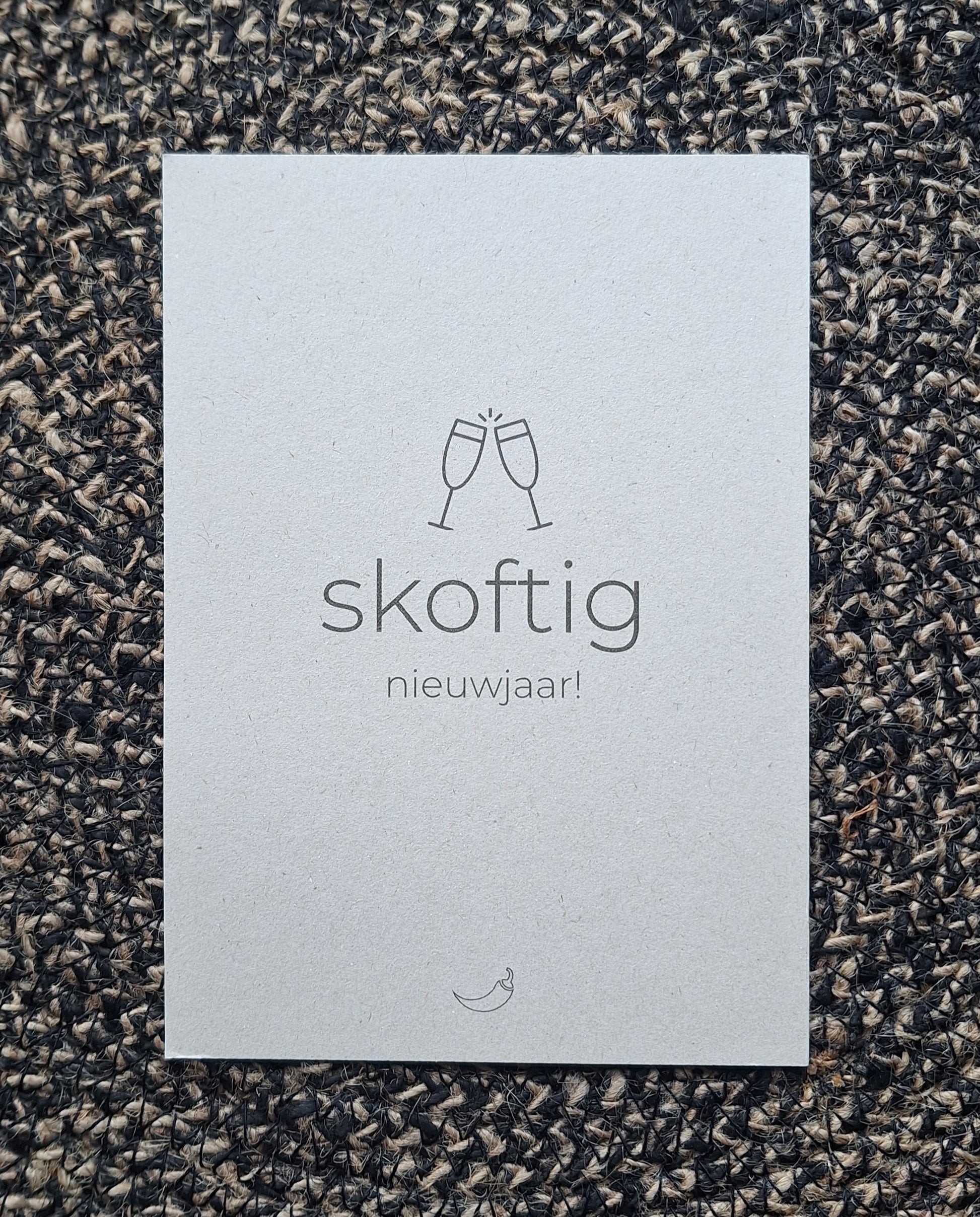 Het jaar is boina op z'n end. Wens een gelukkig nieuwjaar met dit skoftig leuke kaartje.
